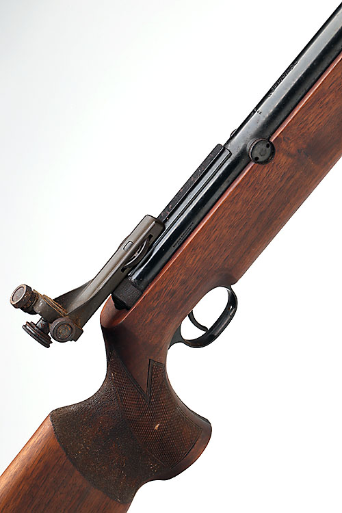 A .177 BREAK-BARREL RECOILLESS AIR-RIFLE SIGNED ORIGINAL, MODEL '66', serial no. 731865, for June 1973,with locking blued 18in. barrel (weight removed and missing), blued air-chamber, micro adjustable peep-sight and tunnel fore-sight, walnut half-stock, probably requires re-sealing internally, COMPLETE WITH a padded camouflage gun-bag (2)