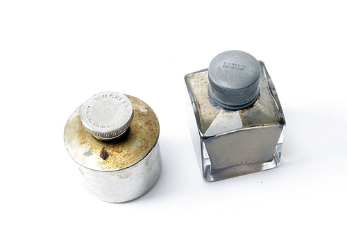TWO VINTAGE GUNCASE OIL BOTTLES, 1 x 1 1/2in. square glass Gibbs bottle, 1 x round W.W. Greener