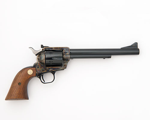 for 1966, with blued 7 1/2in. barrel, ramp and blade fore-sight, adjustable rear-sight to the top-strap, solid colour-hardened frame, blued fluted cylinder, blued grip-straps and smooth walnut grips, the whole appearing unfired except at proof; COMPLETE WITH with its maker's card and polystyrene carton