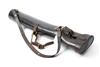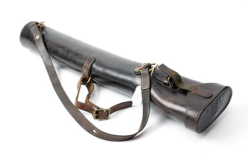A VINTAGE LEATHER INSTRUMENT CASE SUITABLE TO HOLD SHOTGUN BARRELS, measuring approx. 26in. in length, leather shoulder strap
