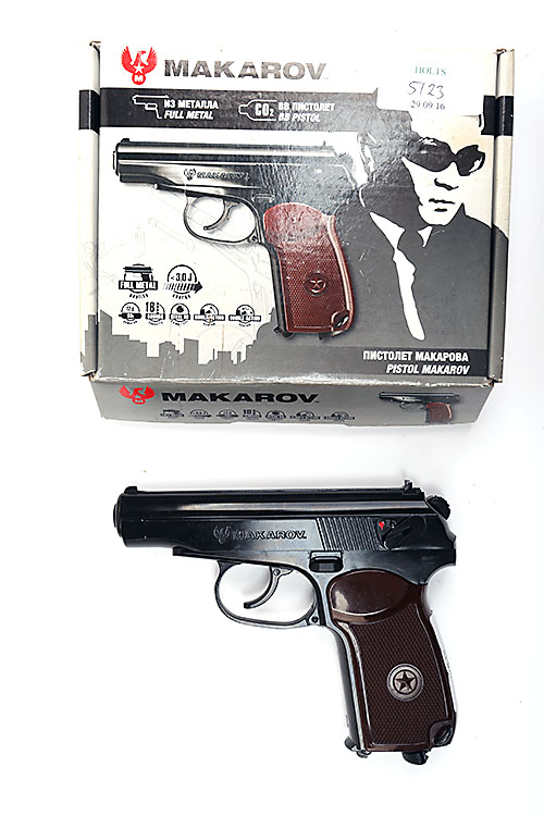 A BOXED .177 (BB) CO2 REPEATING AIR-PISTOL SIGNED MAKAROV, MODEL MAKAROV, serial no. 10E 37326