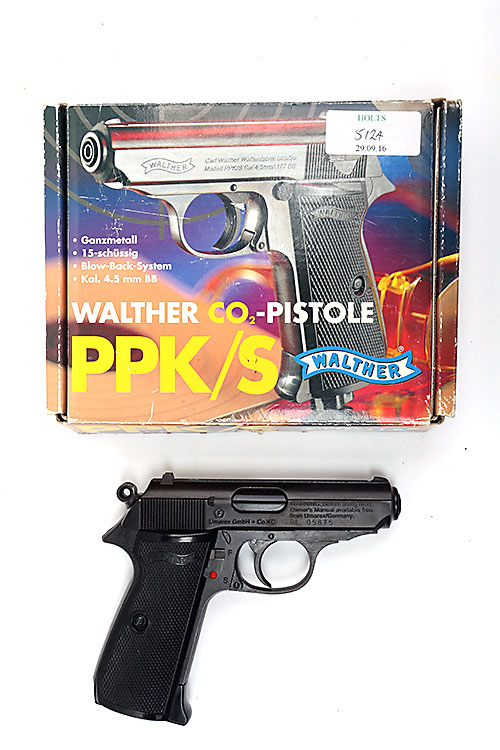 A BOXED .177 (BB) CO2-POWERED AIR-PISTOL SIGNED WALTHER, MODEL 'PPK', serial no. 9L 05875, in imitation of the firearm of the same name, in its makers carton, light wear to finish (untested)