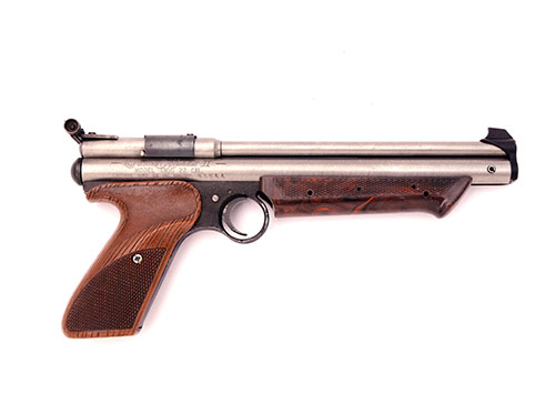 A .22 MULTI-PUMP PNEUMATIC AIR-PISTOL SIGNED CROSMAN, MODEL 1300 MEDALLIST, serial no. 695876,