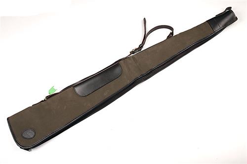 A GOOD QUALITY CANVAS AND LEATHER FLEECE-LINED GUNSLIP,