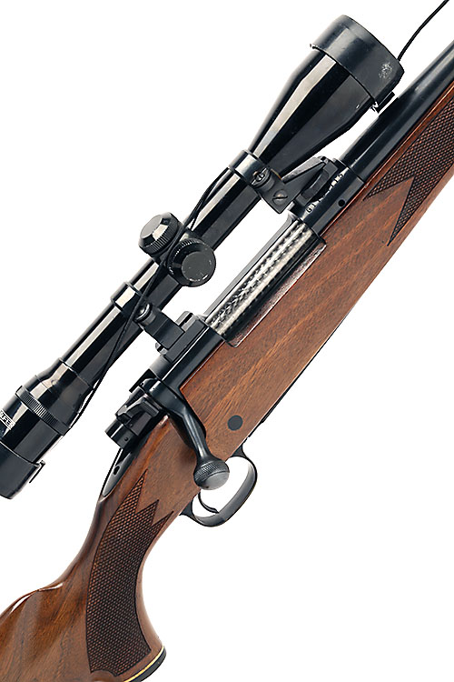 21 3/.4in. nitro barrel, protected ramp-mounted blade fore-sight, fixed block-mounted V-notch rear-sight, fitted with a Walolaufer superior 4x40 telescopic sight, manual safety, hinged floorplate, 13 3/4in. well figured pistolgrip stock with cheekpiece, sling eyes