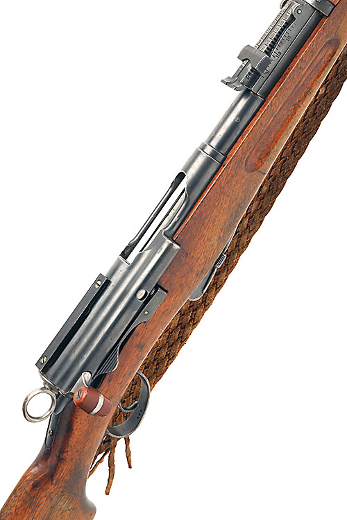 30 1/2in. nitro barrel, block-foresight, tangent rear-sight, removable magazine with matching serial no., leather sling