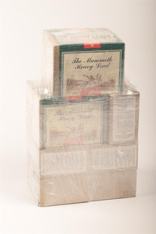 EIGHTY SEVEN 10 BORE 2 7/8 INCH SHOTGUN CARTRIDGES BY GAMEBORE IN THEIR FACTORY BOXES 8 still sealed all listing the use of a heavy load "The Mammoth" with 1 1/2 onces of No3 shot over a plastic wad with star crimp closure.