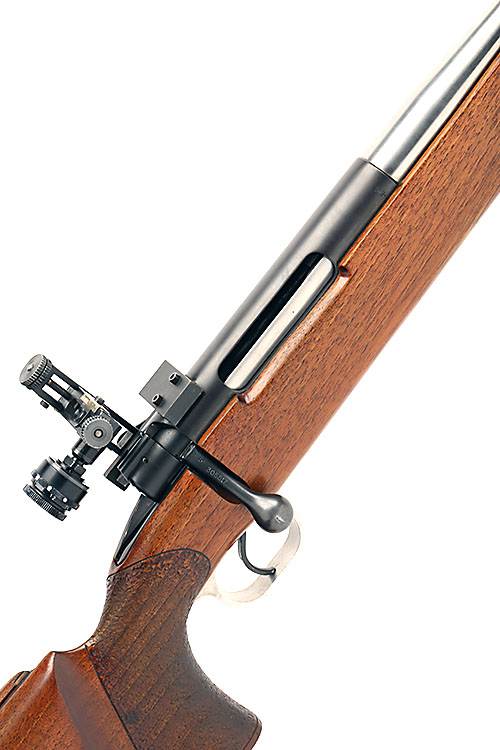 MUSGRAVE 7.62mm BOLT-MAGAZINE TARGET RIFLE, serial no. 305517, 30in. stainless nitro barrel, tunnel fore-sight, rear W. Gehemann D75 Karlsruhe aperture sight, manual bolt safety, hand-stop, custom target stock with adjustable buttplate,