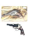 A BOXED .22 CO2-POWERED REPEATING AIR-PISTOL SIGNED CROSMAN, MODEL '38C', serial no. 981262319, in imitation of a .38 revolver, with black painted 4in. barrel, blacked frame, chequered plastic grips and complete with its makers carton, untested