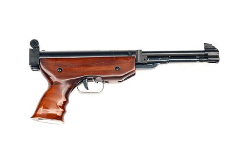 A .177 UNDER-LEVER AIR-PISTOL SIGNED CHINA, MODEL 'QS35', serial no. 961493, with blued 6 5/8in. barrel, adjustable sights, blued air-chamber with flip open breech and smooth wood one-piece stock