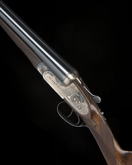 30in. nitro reproved chopperlump barrels (in 2017), 2 3/4in. chambers, bored approx.1/4 and 3/4 choke, treble-grip action with hidden third bite, removable striker discs, automatic safety, hand-detachable lockplates, cocking-indicators, acanthus scroll engraving, retaining traces of original colour-hardening and finish, 15 3/8in. stock, weight 7lb.
