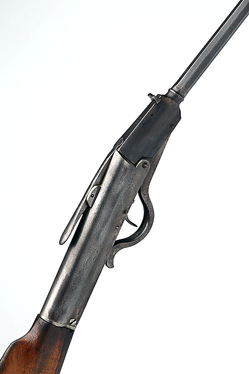 A .177 BREAK-BARREL AIR-RIFLE SIGNED GERMANY, MODEL 'GEM', serial no. 30915, probably for 1915, with two-stage 19in. barrel stamped with the Langenhan trade-mark, slanted air-chamber with long-bar dolls-head lock, walnut butt-stock and trigger-guard forming the cocking lever