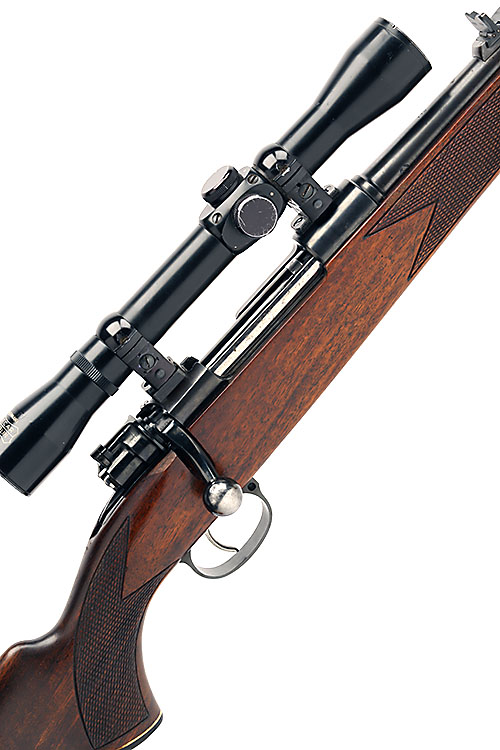 CHURCHILL GUNMAKERS .270 BOLT-MAGAZINE SPORTING RIFLE, serial no. 4762, 23 1/2in. nitro barrel, protected ramp-mounted bead fore-sight, folding V-notch rear-sight, fitted with a Pecar Berlin 4x81 telescopic sight, manual bolt safety, detachable floorplate, 14 1/4in. well-figured pistolgrip stock (including recoil pad) with cheekpiece, sling swivels