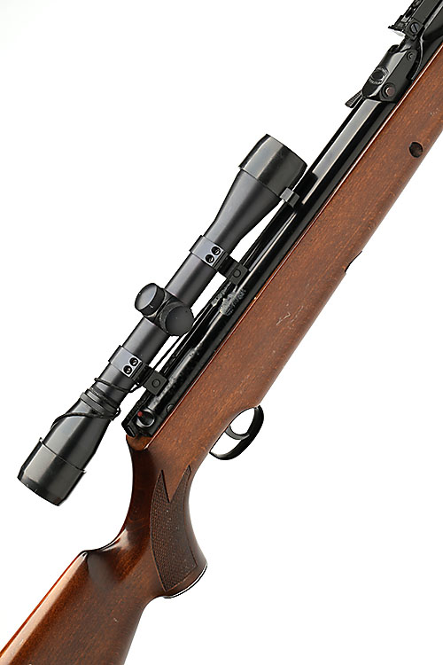 A .22 UNDER-LEVER AIR-RIFLE SIGNED WEBLEY & SCOTT, MODEL 'ECLIPSE', serial no. 824437, with sighted 18in. barrel, flip-up breech, air-chamber with rear-mounted safety, beech half-stock, fitted with a 'BISLEY' 4x32 telescopic sight