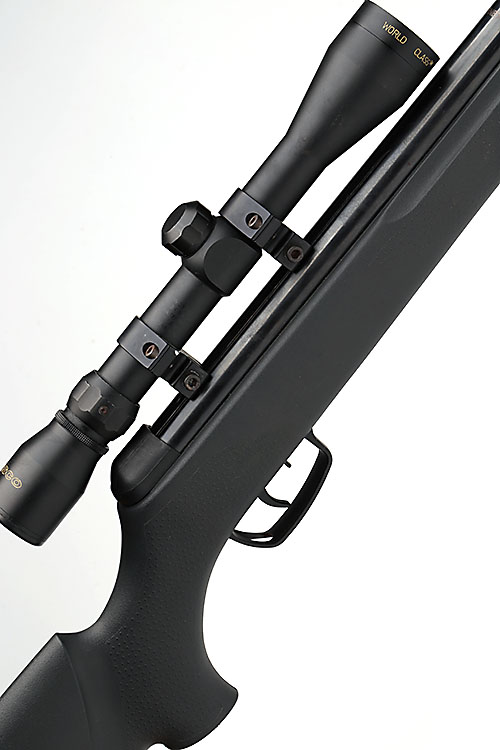 A .22 BREAK-BARREL AIR-RIFLE SIGNED GAMO, MODEL 'HORNET', serial no. 04-1C-093491, with 18in. blued barrel, blued air-chamber and abs plastic half-stock, fitted with a 'TASCO WORLD CLASS' 3-9x40 telescopic sight