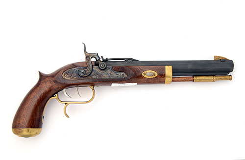 A REPRODUCTION .45 PERCUSSION SINGLE-SHOT TARGET PISTOL SIGNED ARDESA, serial no. 14-13-038085-10,