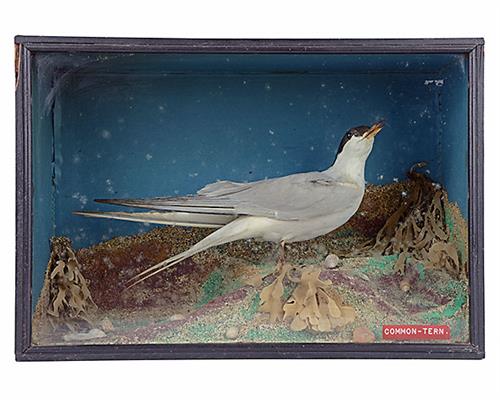 A VINTAGE CASED FULL-MOUNT OF A COMMON TERN, mounted in a glazed wooden case, measuring approx. 16in. x 11in. x 6in.
