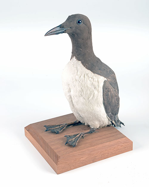 A VINTAGE FULL-MOUNT OF A GUILLEMOT, mounted on a wooden plaque, measuring approx. 13in. x 9in. x 7in.