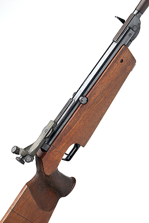 A .177 BREAK-BARREL RECOILLESS TARGET AIR-RIFLE SIGNED ORIGINAL, MODEL '66', serial no. 7425112, dated for 1975, with weighted locking 18in. barrel, tunnel fore-sight, diopter rear-sight and anatomical walnut stock, requires seals, trigger out of adjustment