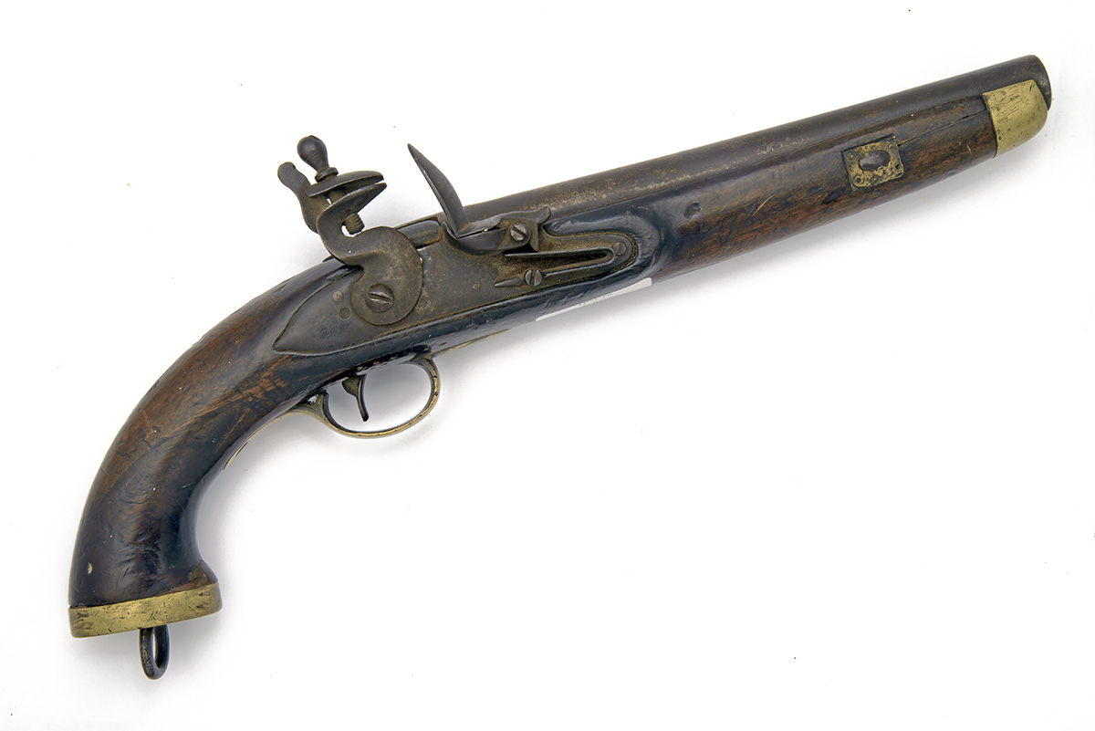 A .690 FLINTLOCK SERVICE-PISTOL, UNSIGNED, MODEL BELGIAN SEA-SERVICE, no visible serial number,