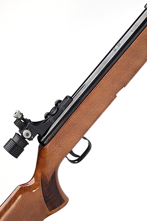 A SCARCE .177 BREAK-BARREL AIR-RIFLE SIGNED ANSCHUTZ, MODEL '335 MATCH TARGET, serial no. 58180, circa 1980, with blued 18 1/2in. barrel, tunnel fore-sight, no provision for rear-sight, blued air-chamber, the end fitted with an Anschutz diopter sight, beech half-stock, much finish remaining