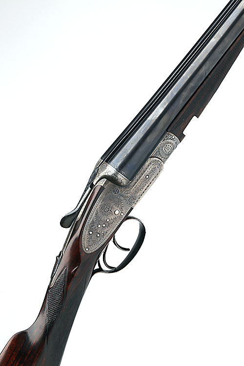 J. GRAHAM & CO. LTD. 12-BORE SIDELOCK EJECTOR, serial no. G7146, 26in. sleeved nitro barrels, the rib engraved 'J. GRAHAM & CO. Ltd 27. UNION STREET. INVERNESS.', 2 3/4in. chambers, bored approx. 1/4 and 1/2 choke, treble-grip action, automatic safety with silver-inlaid 'SAFE' detail, bouquet and scroll engraving, retaining traces of original colour-hardening and finish, 14 1/4in. figured stock, weight 6lb. 4oz