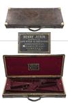 HENRY ATKIN A BRASS-CORNERED OAK AND LEATHER DOUBLE GUNCASE,