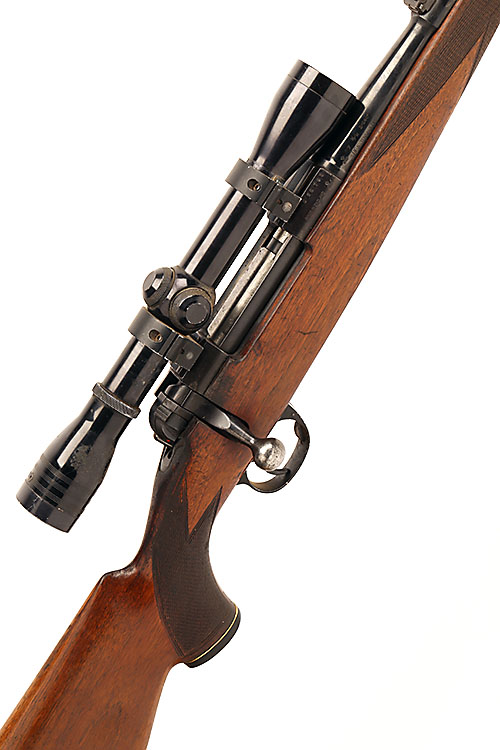 B.S.A. 7X57mm BOLT-MAGAZINE SPORTING RIFLE, serial no. B5B793, 23 1/2in. nitro barrel, ramp-mounted bead fore-sight, folding leaf rear-sight, fitted with a Redfield 4x telescopic sight, 133 7/8in. pistolgrip stock, with cheekpiece, sling swivels, faulty