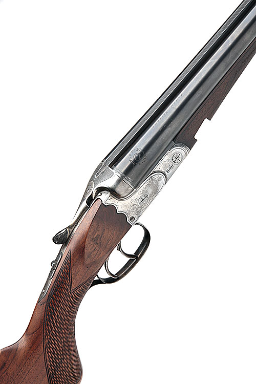 IMMAN MEFFERT (SUHL) 12-BORE BOXLOCK NON-EJECTOR, serial no. 54217, 27 1/2in. nitro barrels, 2 1/2in. chambers, bored approx. true cyl. in both, scroll-back treble-grip action, cocking indicator studs, automatic safety, border engraving, 14in. semi-pistolgrip stock including buttplate
