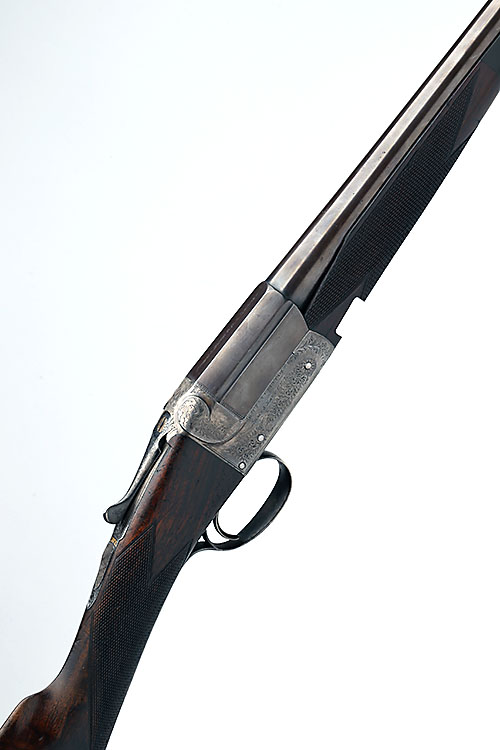 ARMY & NAVY C.S.L. 16-BORE SINGLE-BARRELLED TOPLEVER HAMMERLESS SHOTGUN, serial no. 42714, 28in nitro reproved barrel with faceted breech-end and beaded border, the top flat engraved 'ARMY & NAVY C.S.L.', 2 1/2in. chamber, bored approx. 1/2 choke, removable striker discs, automatic safety with gold-inlaid SAFE' detail, teardrop fences, border and acanthus scroll engraving, the triggerguard and toplever engraved en-suite, retaining very slight traces of original colour hardening and finish, 13 1/4in. straight-hand stock including 15/16in. wooden extension, fore-end with some losses, horn finial, weight 4lb. 4oz.