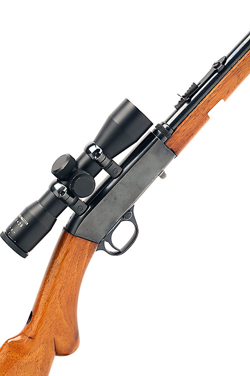 FABRIQUE NATIONALE .22 L.R. SELF-LOADING TAKE-DOWN SPORTING RIFLE, serial no. 8445, 19in. nitro barrel, threaded for sound moderator, bead fore-sight, leaf rear-sight, fitted with a bushmaster 4x28 telescopic sight, semi-pistolgrip stock