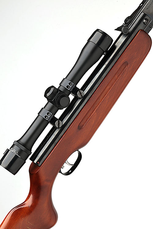 A .22 BREAK-BARREL AIR-RIFLE SIGNED WEIHRAUCH, MODEL 'HW35 STD.', serial no. 990326 with blued 21in. barrel including adaptor for sound moderator, blued air-chamber, beech half-stock, complete with an 'ASI' 4x32 telescopic sight, Whisper silencer, Parker Hale cleaning rod, Weihrauch soft gun-bag and basket-weave leather sling