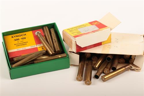 SIXTY .500/.450 FIRED BIG GAME RIFLE CARTRIDGE CASES comprising 43 fo boxer priming & 17 Kynoch (Berdan priming)