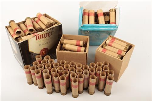 APPROX. 200 ELEY PRIMED PAPER 4-BORE CARTRIDGE CASES, brass heads marked 'ELEY. LONDON. V.' and buff coloured paper cases with a red band and some marked 'P.R.13' or 'P.R 40'