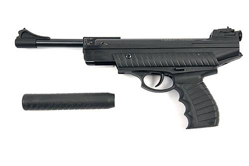 A BOXED .22 BREAK-BARREL SEMI-RECOILLESS AIR-PISTOL SIGNED WEBLEY, MODEL 'TYPHOON', serial no. 0107 16661, with 7in. barrel, blued air-chamber and abs plastic integral frame and grip, appearing little used in its maker's carton with cocking aid and instructions