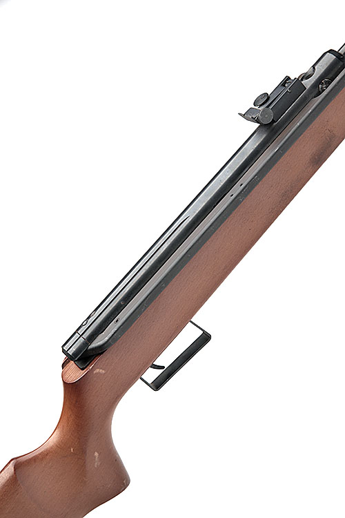 with fixed 18 3/4in. barrel, rotary loading tap, plain air-chamber and beech half-stock