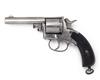 possibly Belgian circa 1868, with 3 3/4in. ovoid barrel marked 'CENTRAL FIRE' on the right and '380 BORE WITH LONG' on the left, plain cylinder, solid frame and curbed chequered semi birds-head walnut grips with lanyard ring at heel, retaining virtually all its original nickel-plated finish, black powder proof