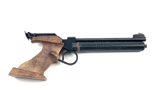 with 9in. floating barrel, alloy single-shot receiver, walnut anatomical right-hand grip and detachable pressure cylinder, together with its manufacturer's carry case, removal tool, sundry accessories and spare reservoir, untested
