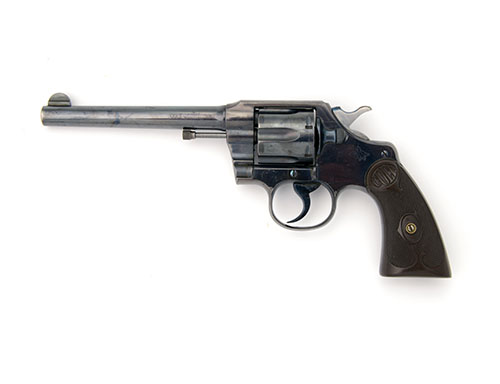 for 1908-09, with blued 6in. sighted barrel, the top of barrel with the makers details and patents to 1905, the left side of barrel marked 'COLT ARMY SPECIAL .38', blued frame with varient Colt trademark to the sideplate, blued and fluted swing-out cylinder, chequered hard rubber grips embossed 'COLT', the whole retaining virtually all its original factory blued finish