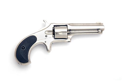 circa 1875, with 2 3/4in. integral octagonal barrel and ejector-housing, fluted cylinder with fixed recoil shield, two-piece frame and chequered hard-rubber birdshead grips, much original nickel-plated finish remaining