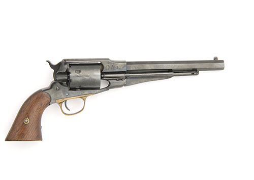 circa 1865, with refinished 8in. octagonal barrel signed 'PATENTED SEPT 14 1858' over 'E. REMINGTON & SONS ILION NEWYORK USA' over 'NEW-MODEL', under-barrel ejector rod retained by the original loading-lever, plain cylinder, solid frame with applied recoil shield, the right hand side of breech marked with a large 'CA17' stamp, brass trigger-guard and smooth walnut grips (left hand chipped at front edge), re-blued throughout