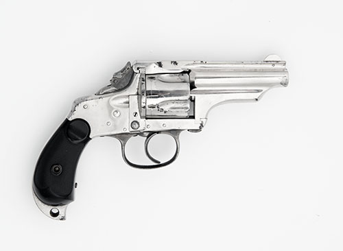 circa 1885, with nickel-plated 2 3/4in. barrel, raised sighting-rib signed by the maker and with patents to 1883, fluted cylinder, plated frame marked '.38 CAL', folding spur on hammer, skull-cracker pommel, guarded trigger and chequered hard rubber grips, some minor loss to plated finish but retaining all colour
