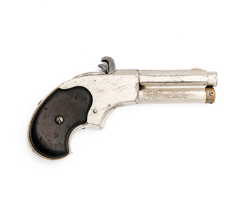 circa 1871, with 3in. octagonal barrel turned to round at the muzzle, the top-flat signed 'E. REMINGTON & SONS ILION N.Y.' over 'RIDER'S PAT AUG. 15TH 1871', integral under-barrel magazine housing with tubular magazine, slab-sided receiver with tandem hammers operating the load and firing sequences, smooth wood grips and guardless trigger