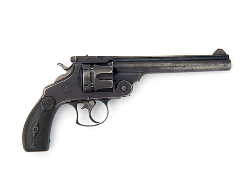 circa 1905, with 6 1/2in. barrel, raised sighting rib devoid of markings, break open blued frame, vertical and horizontally fluted cylinder, frame with rounded butt and chequered hard-rubber grips, square-backed trigger-guard, traces of original finish
