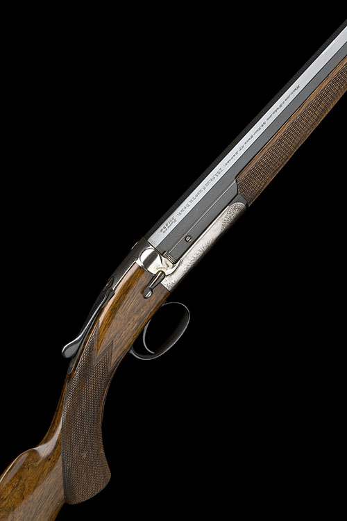 26in. nitro reproved octagonal barrel (smoothbored to .410 from .295 Rook), open sights removed and dovetailed inserts, matt top flat, the breech end engraved 'HOLLAND & HOLLAND. 98. NEW BOND ST. LONDON. .295 SEMI SMOOTH BORE. PATENT NO. 1294. WINNERS OF ALL THE PRIZES IN THE 'FIELD' RIFLE TRIALS. LONDON. 1883.', 3in. chamber, bored approx. 1/2 choke, rounded bar hammerless action with elongated toplever, teardrop fence, removable striker disc, non-selective ejector, side safety lever with gold-inlaid 'SAFE' detail, acanthus scroll engraving, brushed bright and reblued finish overall, 14 3/4in. pistolgrip stock with steel pistolgrip-cap and buttplate, weight 5lb. 2oz.