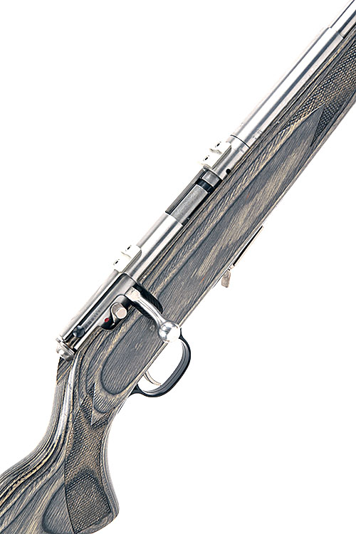 SAVAGE .17 HMR 'MODEL 93R17' BOLT-MAGAZINE SPORTING RIFLE, serial No. 0243004, 14in. unsighted stainless nitro barrel, threaded for sound moderator, dovetail scope mounts (not scope rings), stainless action, manual safety, detachable magazine, 14 1/4in. laminated pistolgrip stock (including adjustable recoil pad)