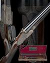 26in. nitro reproved chopperlump barrels, rib engraved 'ALEX MARTIN. 20 EXCHANGE SQUARE. GLASGOW. & AT EDINBURGH. ABERDEEN. & STIRLING.', with bold celtic strapwork at the breech end and bands of the same to the breech end of the barrels, 2 1/2in. chambers, bored approx. true cyl. and 3/4 choke, treble-grip action with hidden third bite, automatic safety with gold-inlaid 'SAFE' detail, rolled-edge triggerguard, bold engraving of celtic knots, strapwork and serpents carved in low relief on a matted background, retaining some original colour-hardening and finish, 14 1/2in. highly-figured stock (slightly swept left side), weight 6lb. 6oz., in its leather case with gold-tooled Alexander Martin leather trade label, the case lid exterior marked 'T.T. Mc C.'