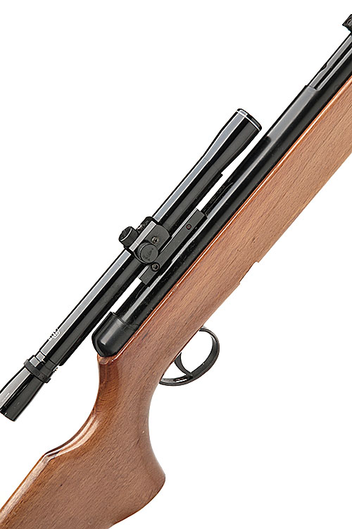 A .22 BREAK-BARREL AIR-RIFLE SIGNED BSA, MODEL 'METEOR SUPER', serial no. TG5610, with 18 1/2in. stove enamelled barrel (back-sight missing), stove enamelled air chamber and beech half-stock with ventilated recoil pad, complete with a 'BSA' 4x20 telescopic sight (breech washer absent)