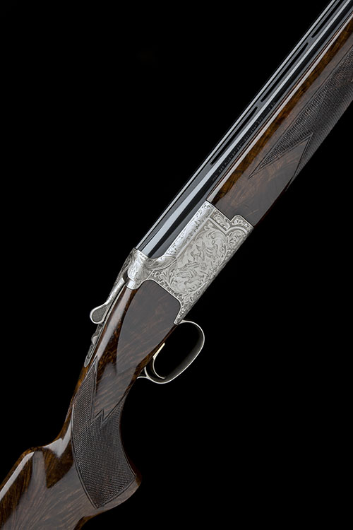 28in. nitro reproved barrels with 13mm ventilated matt top-rib with intermediate bead sight, 2 3/4in. chambers, multichokes (with spares), hold-open toplever, manual safety with integral barrel selector switch, gold-washed adjustable trigger, game and scroll engraving, bright finish overall, 14 3/4in. highly-figured stock including buttplate, weight 7lb. 15oz.