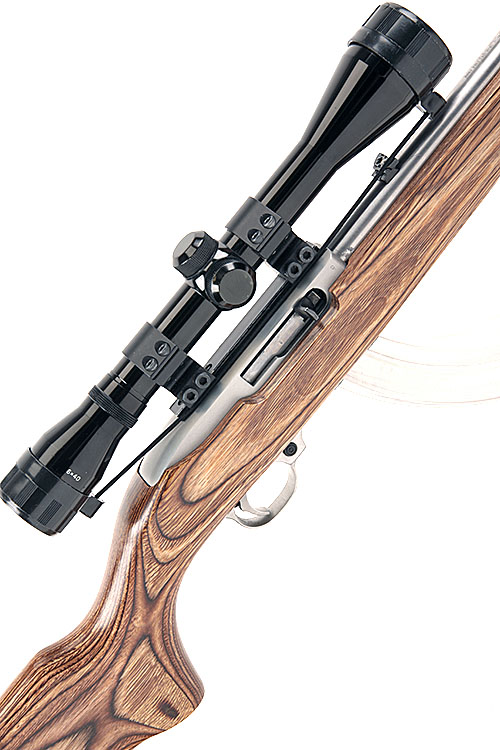STURM, RUGER & CO. .22 L.R. 'MODEL 10/22' SELF-LOADING SPORTING CARBINE, serial no. 246-45556, 18 1/2in. stainless nitro barrel, block-mounted bead fore-sight, folding rear-sight, fitted with an un-named 6x40 telescopic sight, manual safety, detachable banana magazine with spare, 14in. pistolgrip laminated stock